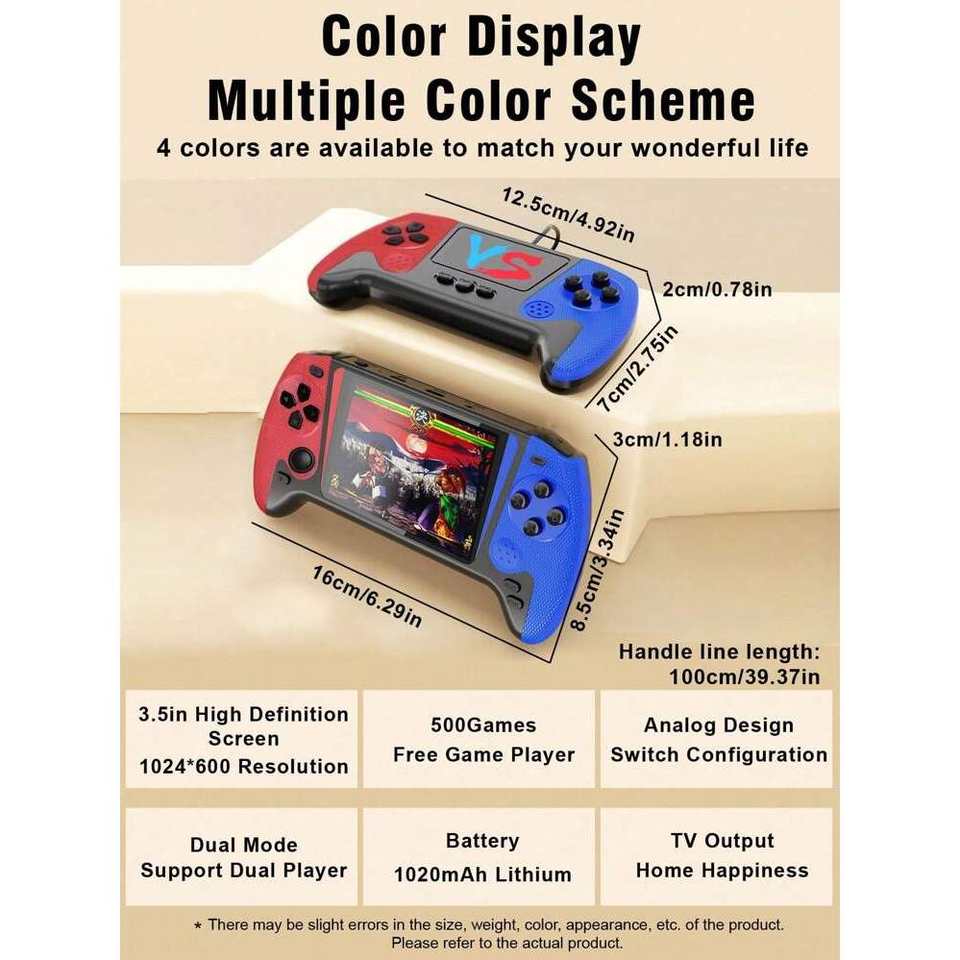 1pc New Big Screen Game Machine, Built-In 500 Classic Retro Games. The Nostalgic Red And White Machine Can Be Played By Two Peop