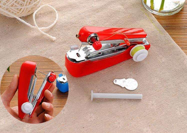 จักรเย็บผ้าแบบใช้มือขนาดเล็กแบบพกพา1ชิ้นเครื่องมือตัดเย็บใช้งานง่ายเครื่องมือเย็บผ้าเครื่องมือเย็บปักถักร้อยที่มีประโยชน์