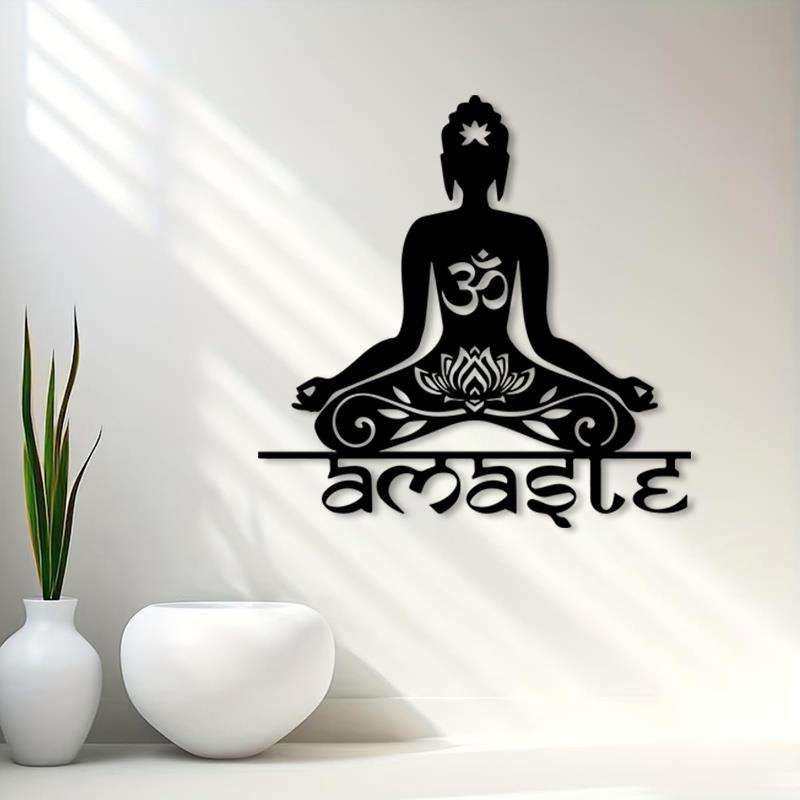 ของตกแต่งผนังโลหะพระพุทธรูปวินเทจ 1 ชิ้น ทำจากเหล็กกันสนิม รูปดอกบัวนั่งสมาธิ เหมาะสำหรับตกแต่งห้องโยคะ ของขวัญทางจิตวิญญาณ