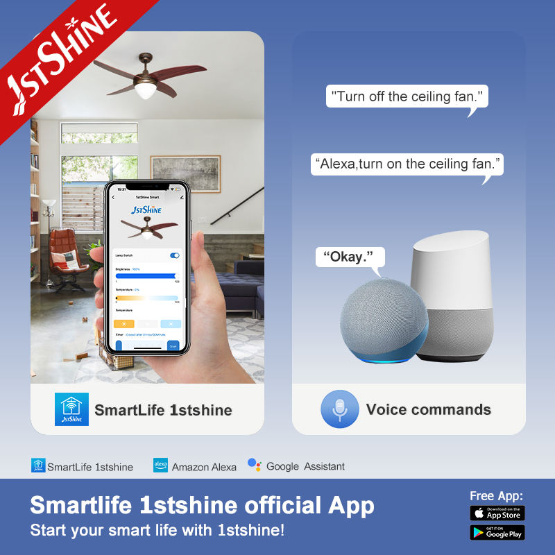 พัดลมเพดาน1stshine ลดกระหน่ำ2025สไตล์โบราณพัดลมติดเพดานแบบเรโทรพร้อมไฟ LED