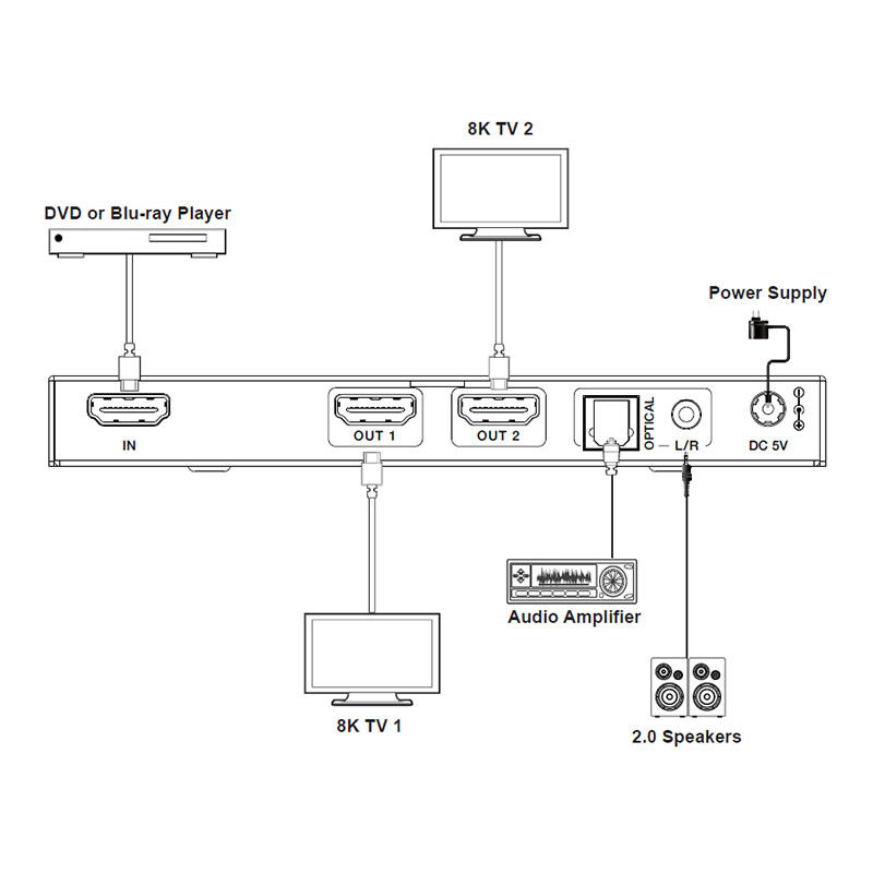 1x2 8K 2พอร์ต HDMI Splitter พร้อมเครื่องตัดการฝังและ EDID