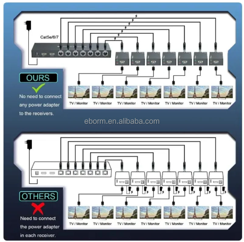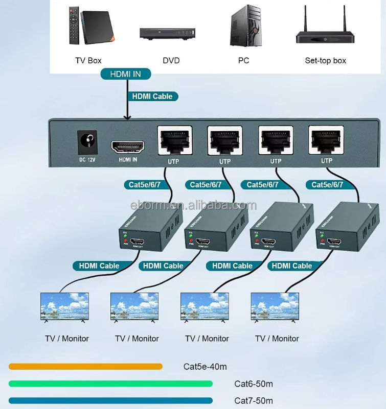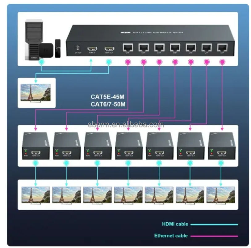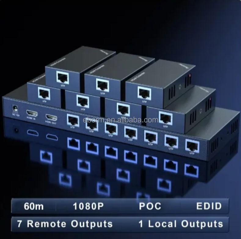 1x7 HDMI Splitter Extender, 60M 1x2 HDMI UTP Extender Cat5e Cat6 1080P RJ45 HDMI Splitter Extensible ตัวรับสัญญาณ