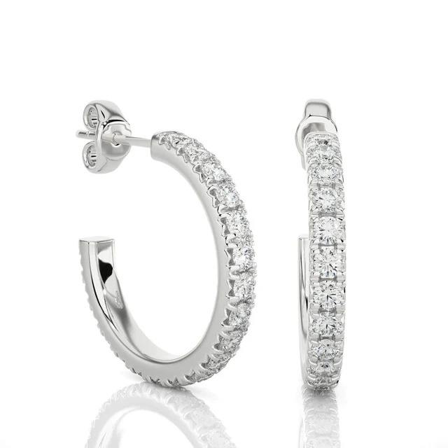 ต่างหูห่วงเพชรสำหรับผู้หญิงต่างหูห่วงทองสีเหลือง14K 2.0กะรัตสำหรับปลูกในแล็บทรงกลม