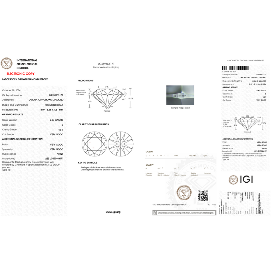 เพชรทรงกลม 2.0 กะรัต VS1/E เพชรเลี้ยงในห้องปฏิบัติการ พร้อมการเจียระไนแบบ VG และการขัดเงา สำหรับแหวนเพชรที่หรูหราสำหรับทั้งชายและหญิง