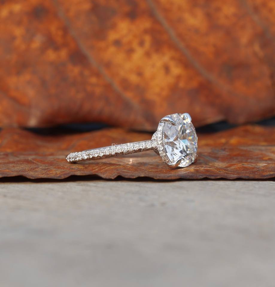 แหวนเพชร CVD สีทองสำหรับผู้หญิง2.0 CT E-VS ตัดในห้องปฏิบัติการได้รับการรับรองว่าฮาโลสำหรับการหมั้นของขวัญครบรอบปีที่ได้รับการรับรอง