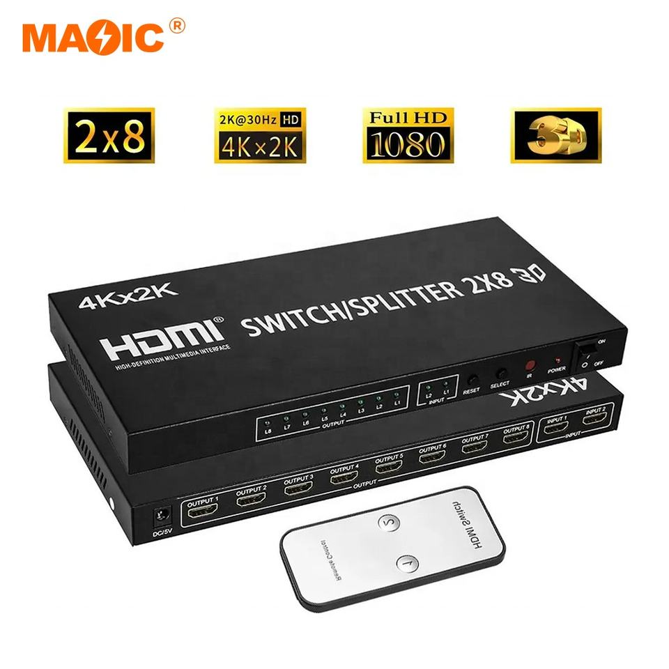 2.0 สวิตช์ Hdmi Splitter ตัวแปลงวิดีโอ 2x8 2 อินพุต 8 เอาต์พุตสวิตช์ Hdmi 4k 60hz สวิตช์ Hdmi
