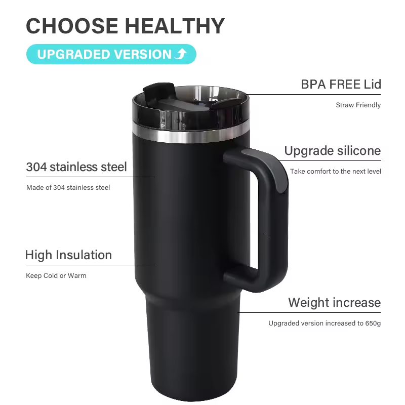 แก้วน้ำสแตนเลสแบบมีหูจับ ขนาด 40 ออนซ์ รุ่น 2.0 OEM Stan Cup เก็บอุณหภูมิได้ พร้อมเคลือบโลโก้ตามสั่ง ป้องกันการรั่วซึม ปราศจากสาร BPA ผนังสองชั้นสุญญากาศ