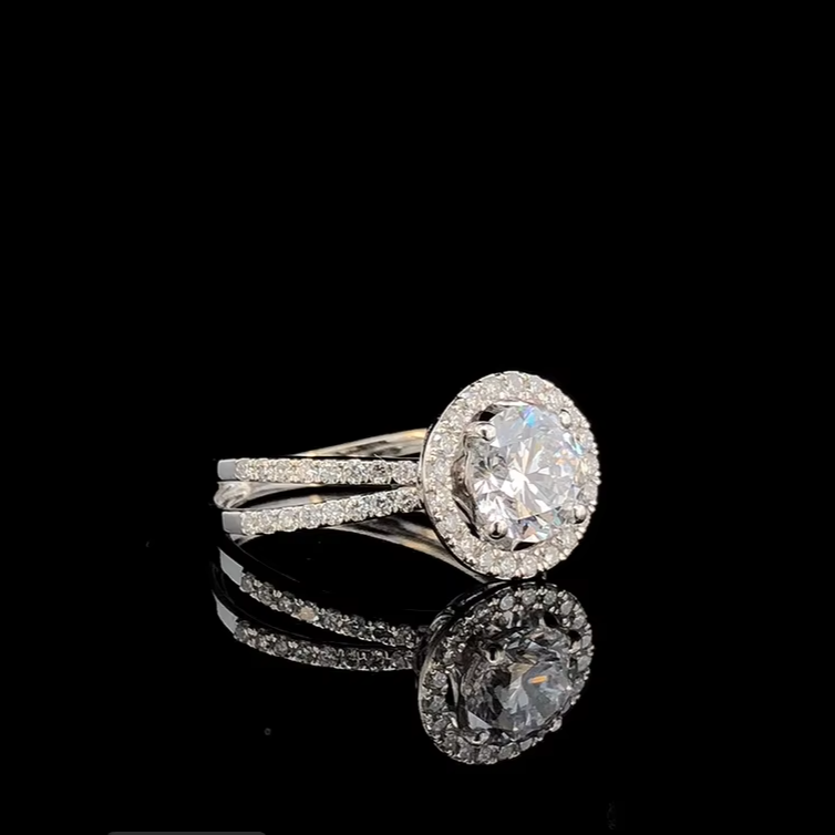 แหวนหมั้นเพชรเพาะเลี้ยงในห้องปฏิบัติการ 2.00 กะรัต รับรองโดย IGI ตัวเรือนทองคำแท้ 14K ทรงกลม ประดับเพชรแบบ Halo สำหรับผู้หญิง