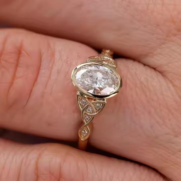แหวนเพชรสำหรับผู้หญิงตัวเรือนทรงรี14K ทรงรี2.00 CT สำหรับใช้ในห้องปฏิบัติการ