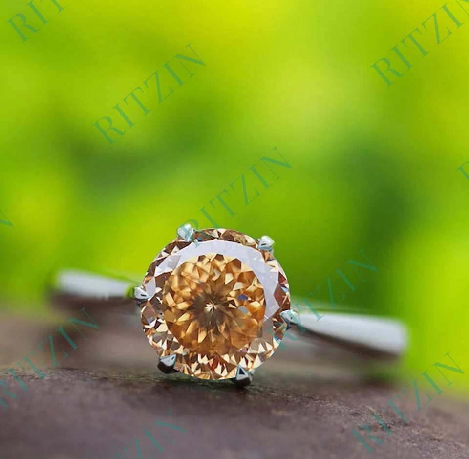 แหวนหมั้นเพชรโมอิสซาไนต์ทรงโปรตุเกส น้ำตาลสดใส 2.00 กะรัต ตัวเรือนทองคำขาว 10K ประดับแบบกรงเล็บ ความใส VVS