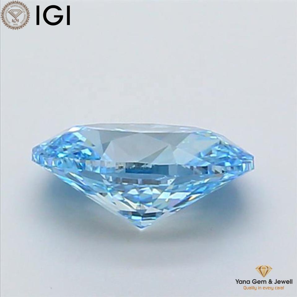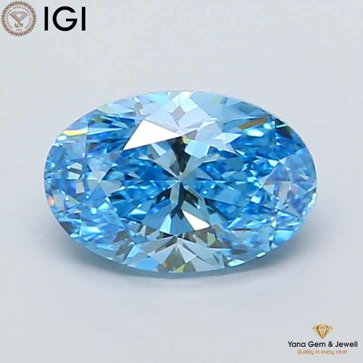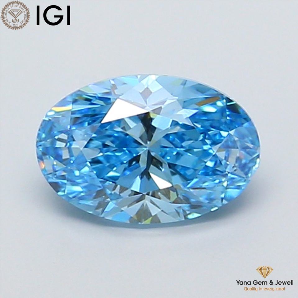 เพชรทรงรี 2.00 กะรัต ผลิตในห้องปฏิบัติการด้วยวิธี CVD พร้อมใบรับรอง IGI สีฟ้าสดใสแฟนซี ความสะอาดระดับ VS2 สำหรับแหวนดีไซเนอร์