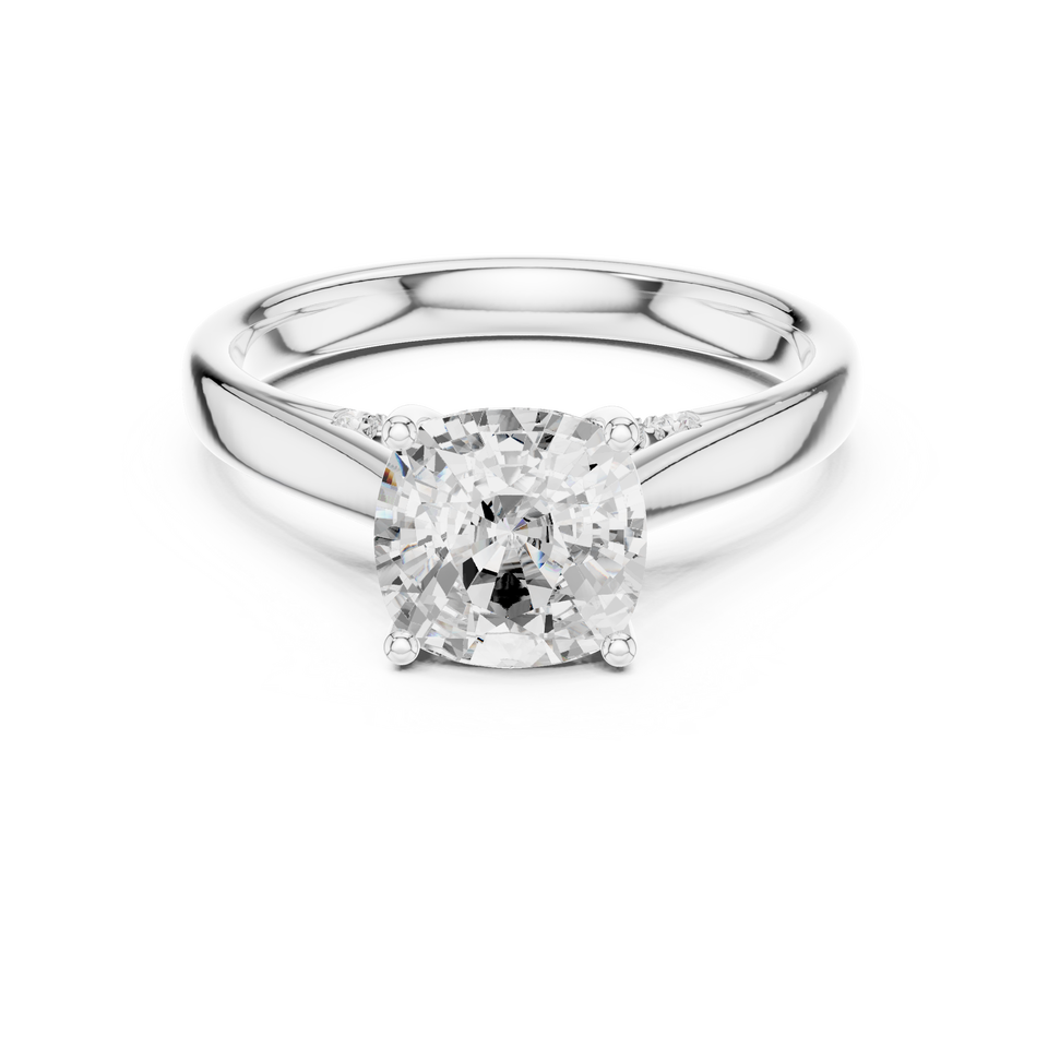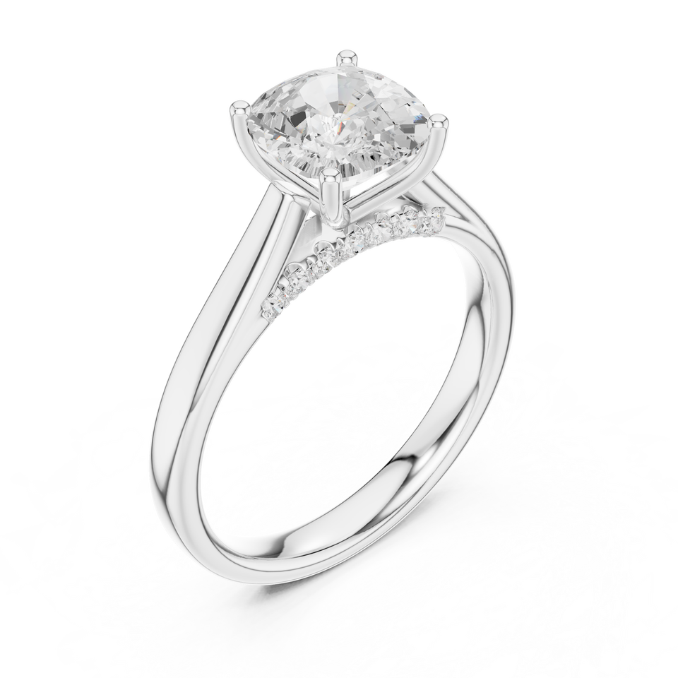 แหวนเพชรทรงคุชชั่น 2.00 กะรัต เพชรเลี้ยงในห้องปฏิบัติการ คุณภาพ E VVS2 ขัดเงาอย่างดี ตัวเรือนทองคำแท้ แหวนแต่งงานสำหรับผู้หญิง