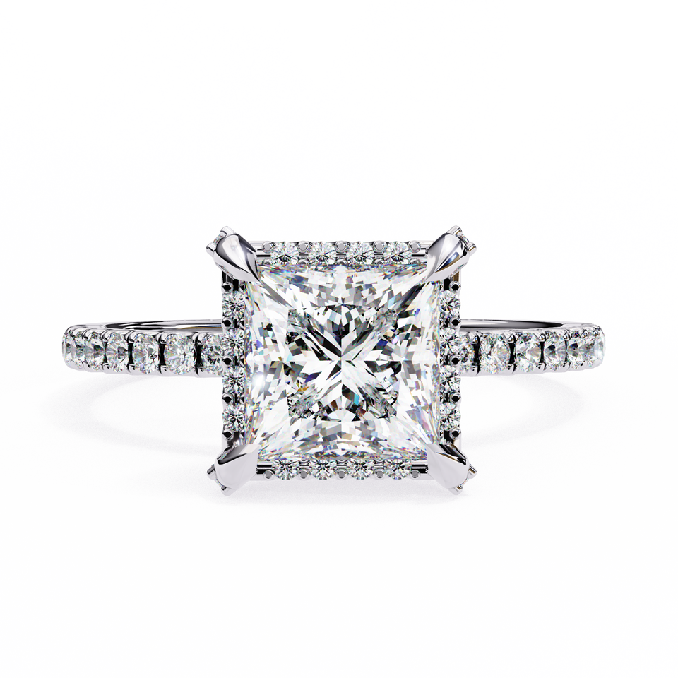 แหวนหมั้นเพชรที่ได้รับการรับรองจาก2.00กะรัต IGI สำหรับผู้หญิงแหวนหมั้นเพชรที่ได้รับการรับรองสไตล์งานแต่งงานแบบซ่อนทองรัศมีสำหรับผู้หญิง