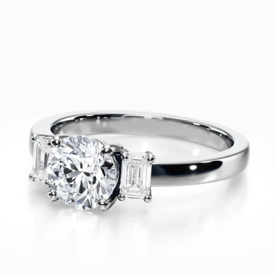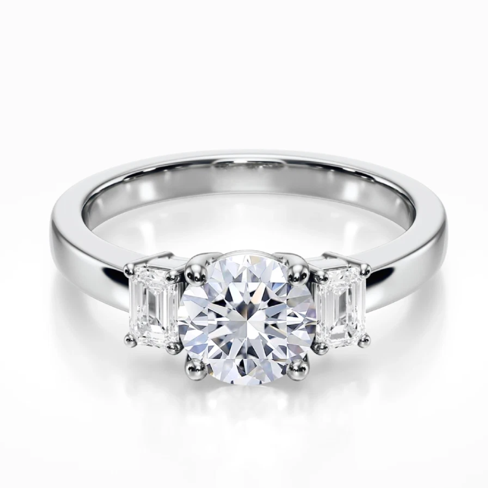 แหวนหมั้นเพชรสามเม็ดสำหรับผู้หญิงมีเพชร2.00กะรัตมีสี D และ VVS1ใสสีทองขาว14K