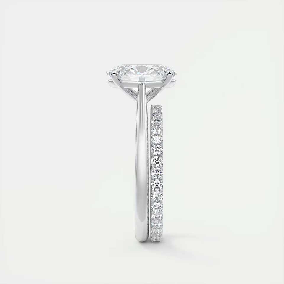 แหวนหมั้นเพชรทรงรี 2.00 กะรัต เพชรเลี้ยงในห้องปฏิบัติการ ดีไซน์แบบ Cathedral Solitaire ประดับด้วยขาจับแบบ Prong Setting ผลิตจากทองคำขาว 14k