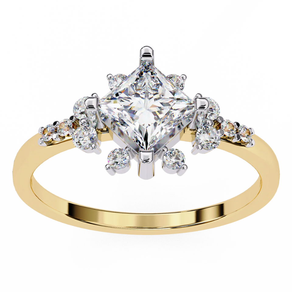 แหวนแต่งงานประดับเพชรเม็ดเดี่ยวสำหรับเจ้าหญิง14K สีขาวทอง