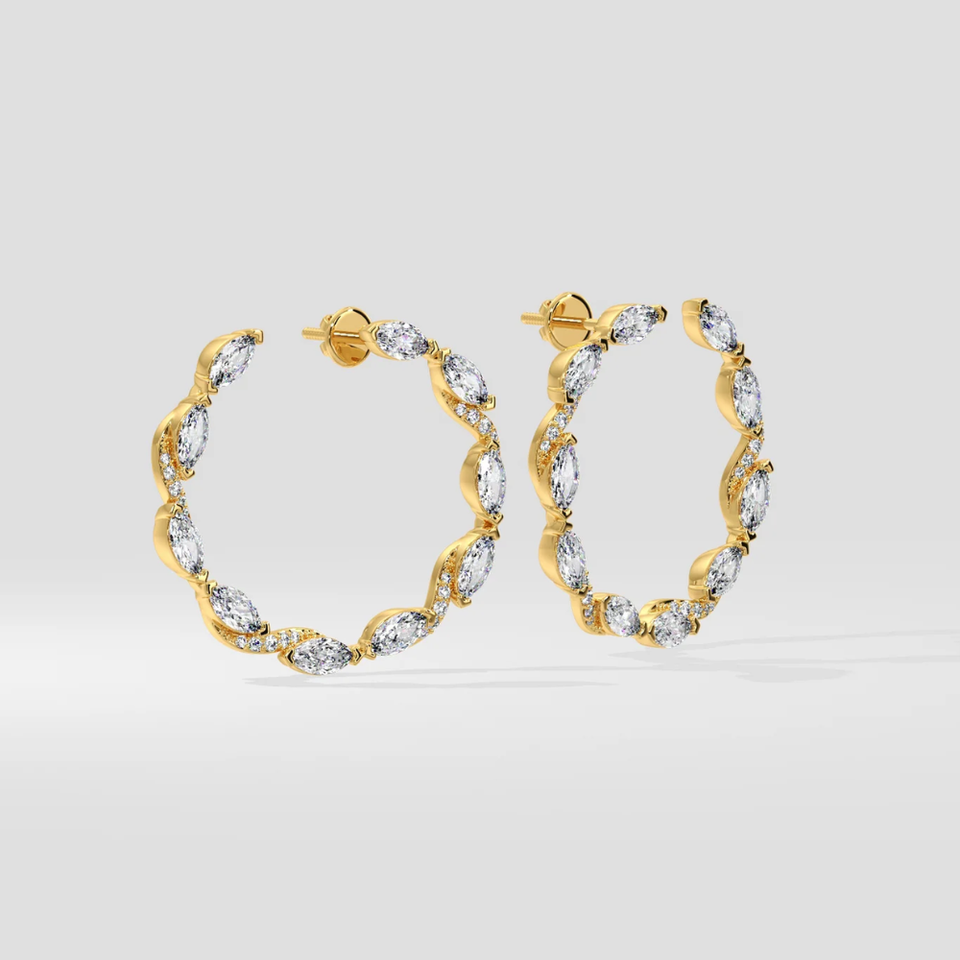 2.00 Carat Total Marquise Shape Lab Grown Diamond Hoop Earring 14K Yellow Gold Diamond Earring for Woman