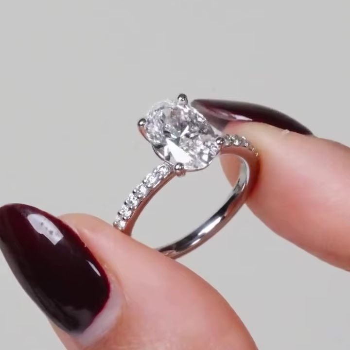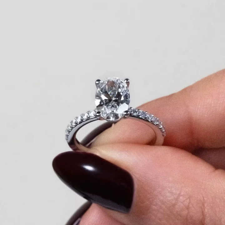 2.00 Ct Luxury Oval Brilliant Cut Lab Grown Diamond Engagement Ring 18K/14K/10K Solid Gold Pave Band Minimalist Bridal Jewelry