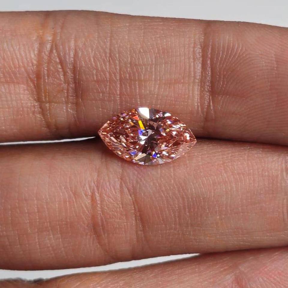 เพชรทรงมาร์คีส์สีชมพู 2.00 กะรัต เพาะเลี้ยงในห้องปฏิบัติการ สำหรับทำแหวน ได้รับการรับรองจาก IGI เพชรเม็ดเดี่ยว มีทุกขนาด ราคาถูก