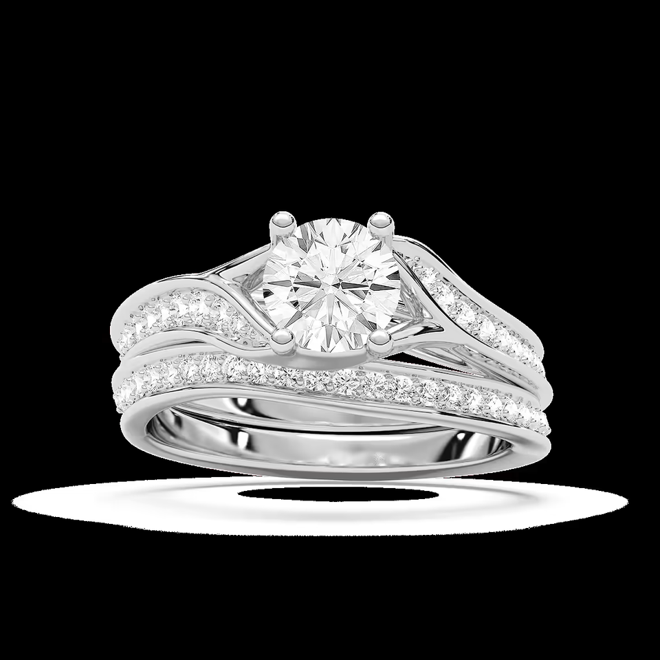แหวนหมั้นเพชรทรงกลม 2.00 กะรัต เพชรเลี้ยงในห้องปฏิบัติการ ดีไซน์แบบ Bypass Split Shank Pave ทองคำแท้ 14K สำหรับผู้หญิง พร้อมใบรับรอง