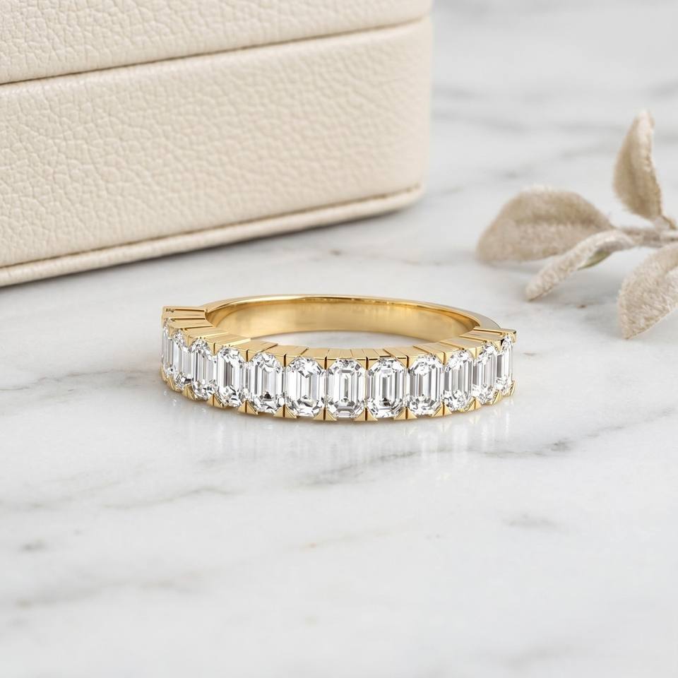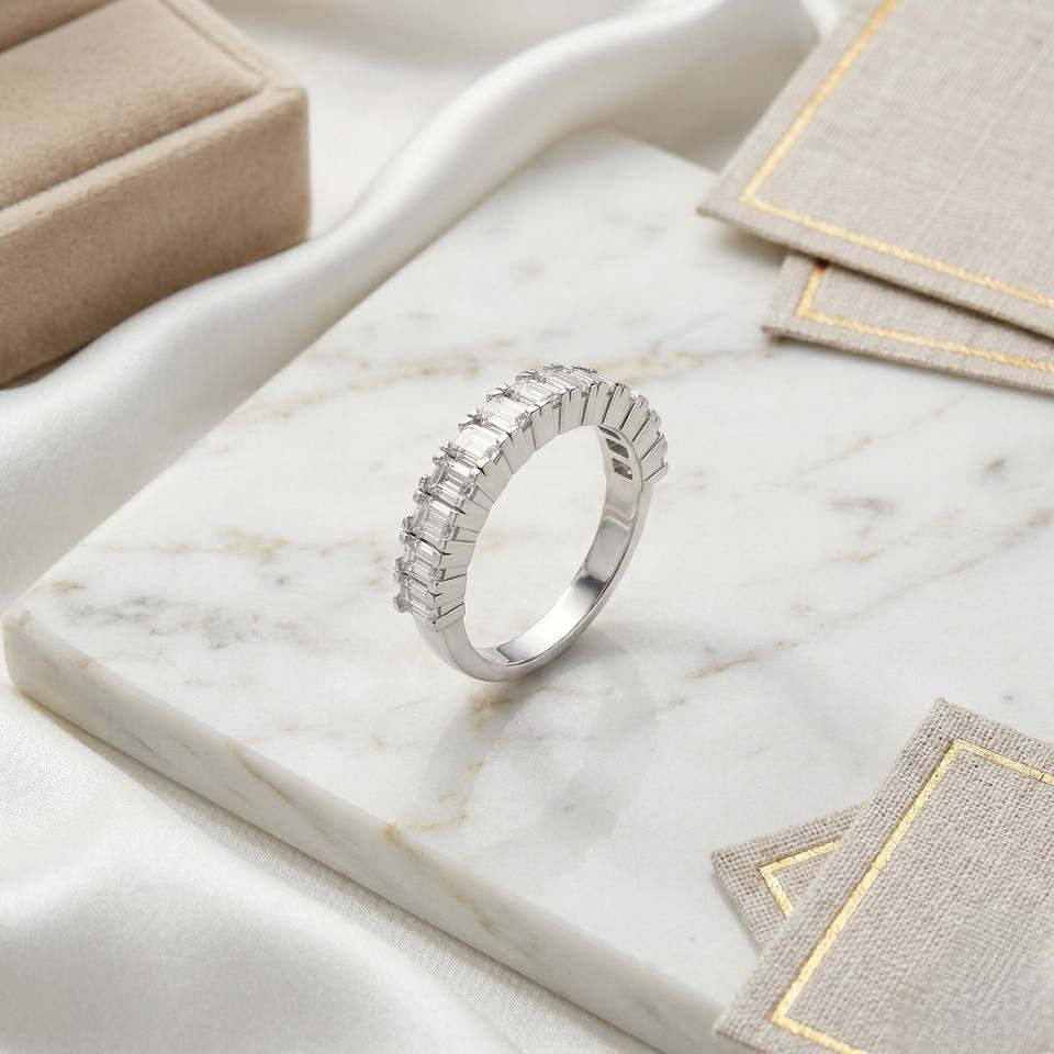 แหวนทรงบาร์เซ็ตแบบครึ่งวงกลมประดับมรกต 2.00 กะรัต