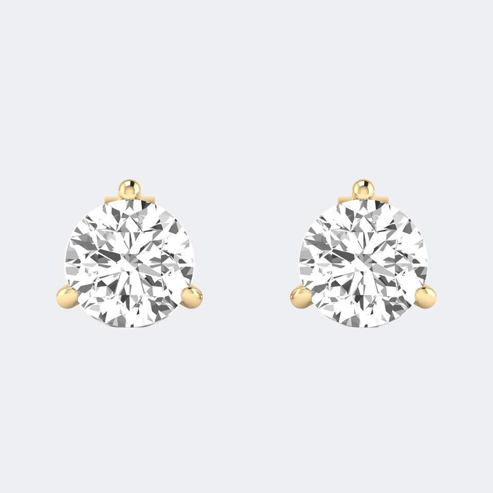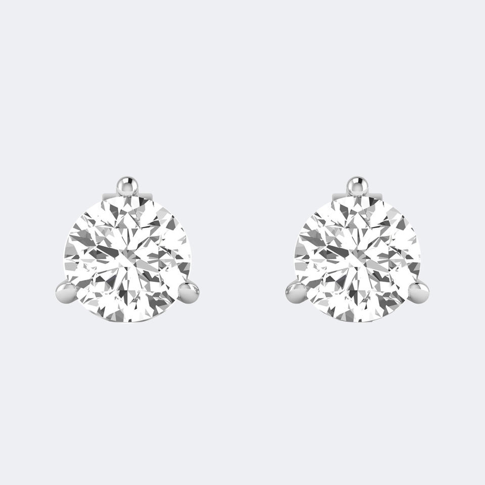 ต่างหูเพชรทรงกลมเจียระไนแบบบริลเลียนท์ น้ำหนักรวม 2.00 กะรัต เพชรเพาะเลี้ยงในห้องปฏิบัติการ ทอง 14K สี DEF ความสะอาด VVS VS ตัวเรือนแบบ 3 กรงเล็บ ดีไซน์คลาสสิคแบบมาร์ตินี่ เครื่องประดับแบบโซลิแทร์