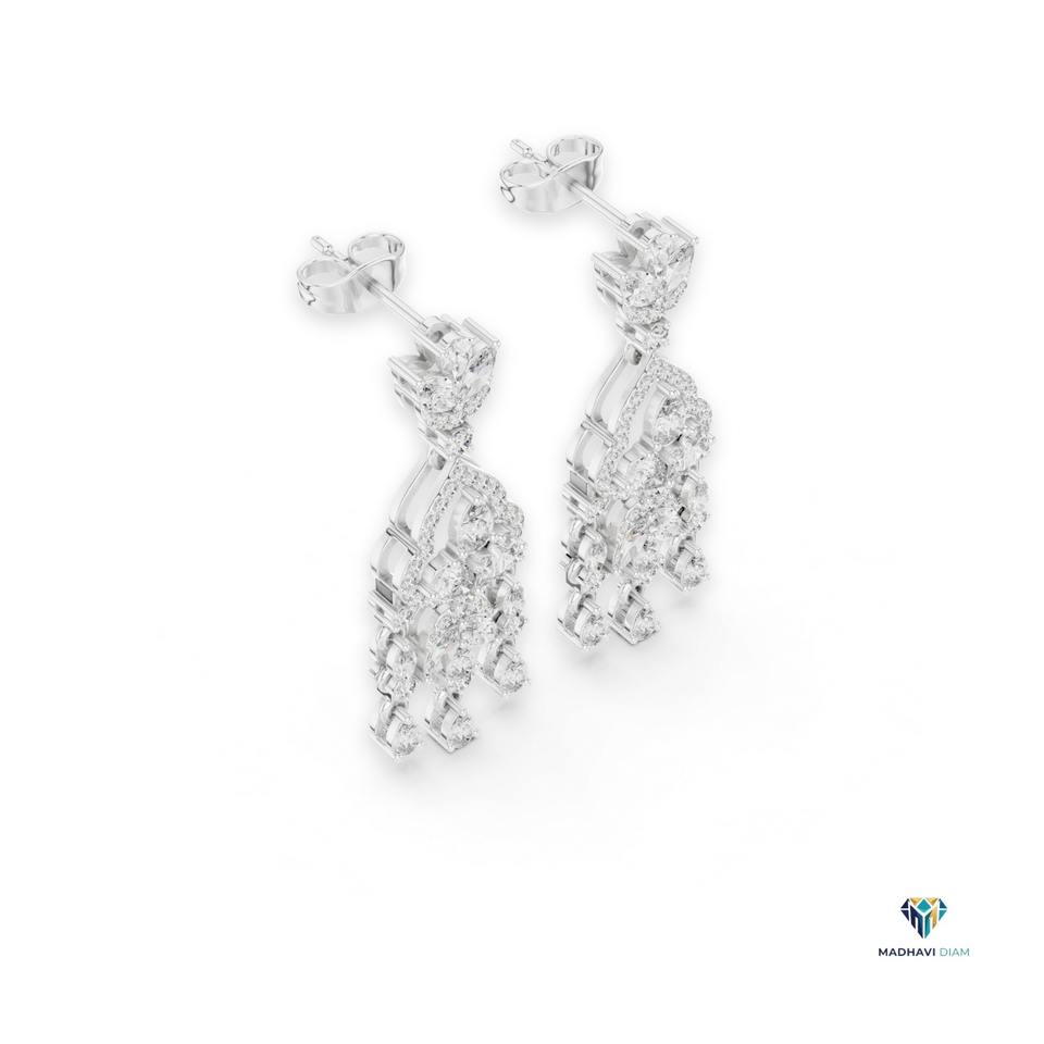 ต่างหูเพชรทรงลูกแพร์สีขาว 2.01 กะรัต ทองคำขาว 14K ต่างหูระย้าดีไซน์หรูหราสำหรับผู้หญิง