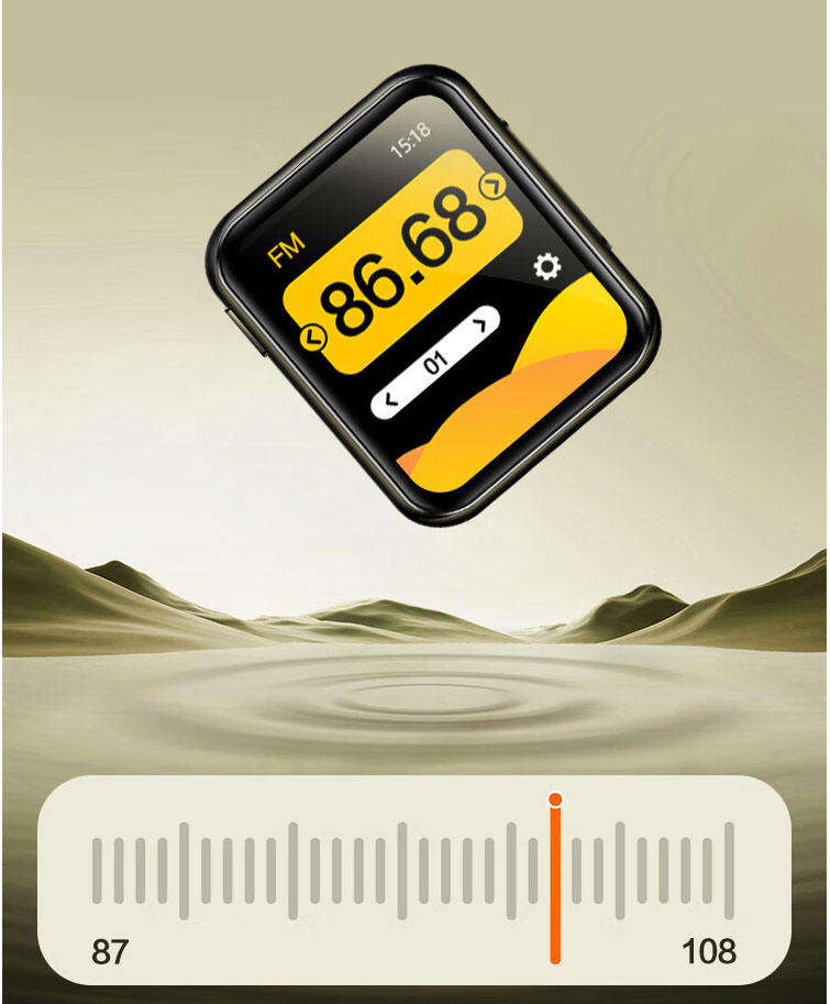 เครื่องเล่น MP3 หน้าจอสัมผัส IPS ขนาด 2.01 นิ้ว ความจุ 32GB ตัวเครื่องทำจากโลหะผสมสังกะสี พร้อมวิทยุ FM และเครื่องบันทึกเสียง สำหรับเล่นกีฬา