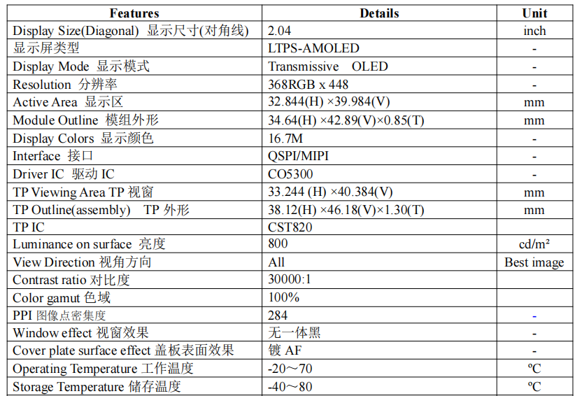 โมดูลจอแสดงผล AMOLED ขนาด 2.05 นิ้ว ปรับแต่งความละเอียดได้ หน้าจอ OLED