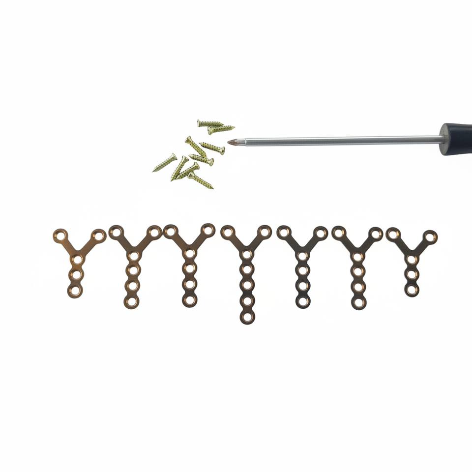 แผ่นยึดขนาด 2.0 มม. สำหรับศัลยกรรมขากรรไกรและใบหน้า (3-5 รู) พร้อมสกรูหัวไขว้ ไทเทเนียม (43 ชิ้น)