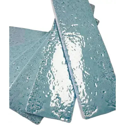 แผ่นไฟร์บริคสำหรับตกแต่งภายนอกอาคารแผ่นกระเบื้องเซรามิกเคลือบเงาสีฟ้าอ่อนขนาด2 1/2X8สำหรับตกแต่งผนังด้านนอก