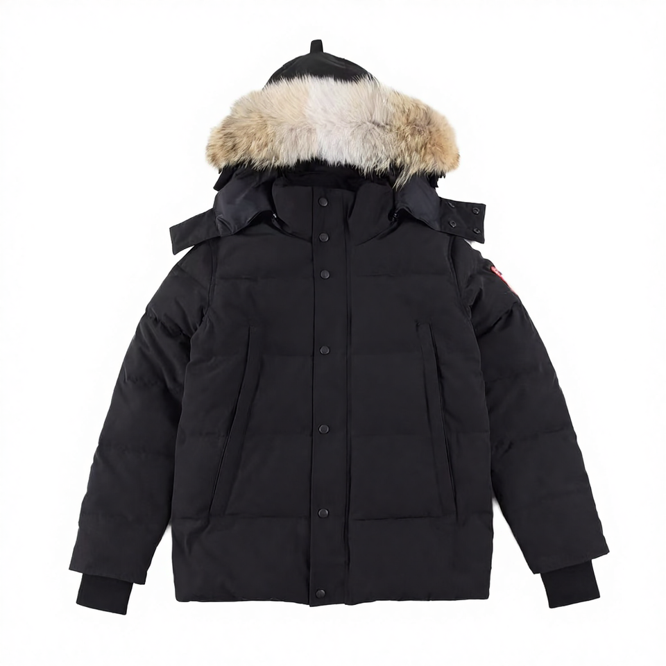 เสื้อแจ็คเก็ตพัฟเฟอร์หนา กันลม อุ่น คุณภาพสูง สไตล์คลาสสิก พร้อมฮู้ด ซิป ปักตรา สำหรับผู้ชาย ใส่ลำลองในฤดูหนาว แบบพาร์กา ขนห่าน