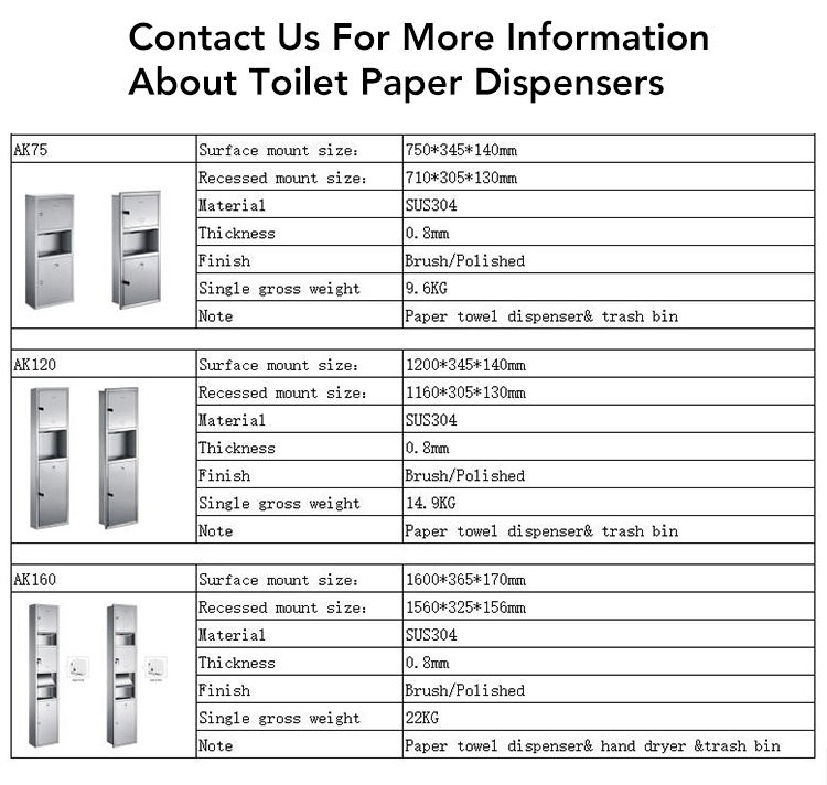 2 1 Modern Wall-Mounted Office Hotel Bathroom Stainless Steel Combination Unit Waste Receptacle Bin Paper Towel Dispenser