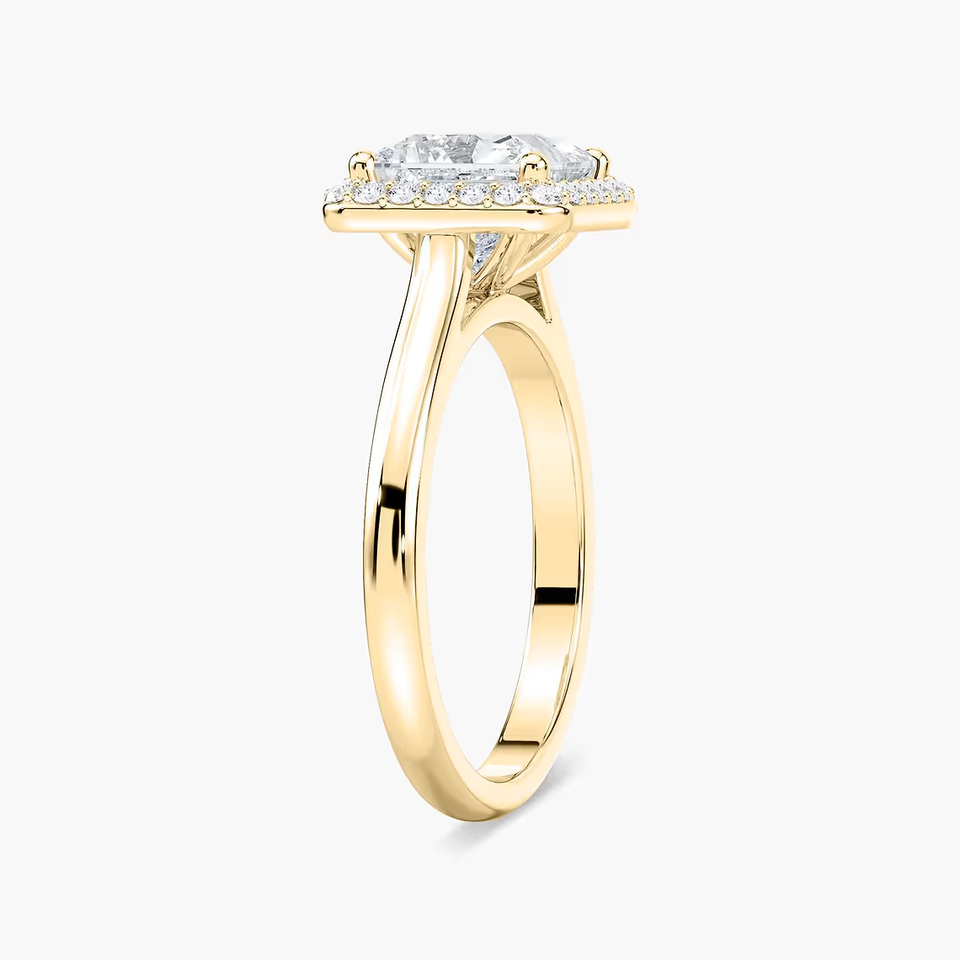 แหวนหมั้นเพชรทรงเจ้าหญิง 2.10 กะรัต ผลิตในห้องปฏิบัติการ ประดับด้วยเพชรรอบวง รับรองโดย IGI ทองคำแท้ 14K