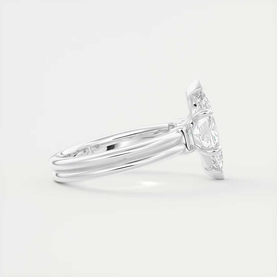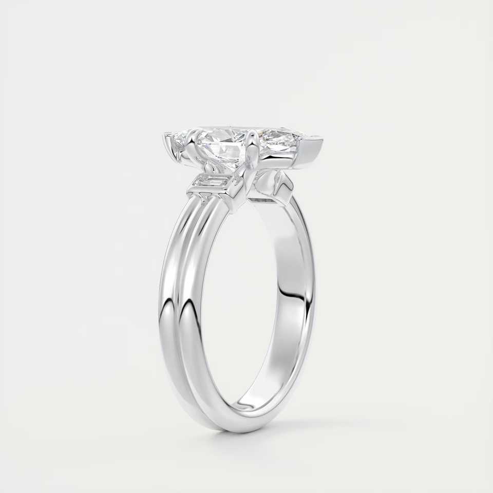 แหวนหมั้นสามเม็ดประดับเพชรทรงมาร์คีส์ 2.10 กะรัต พร้อมเพชรทรงบาแกตต์ด้านข้าง ทำจากทองคำขาว 14K