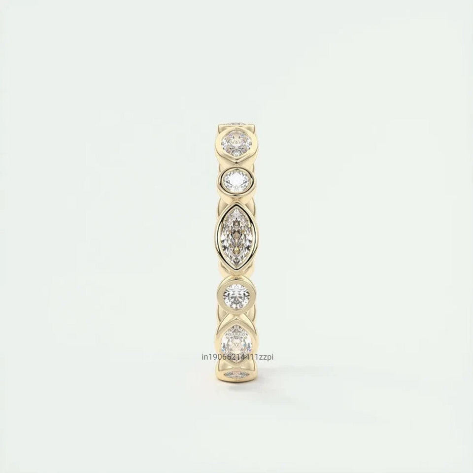 2.10 TC Marquise and Round Cut Moissanite Wedding Band in 14k Solid Yellow Gold Bezel Set Eternity Stacking Ring for Women