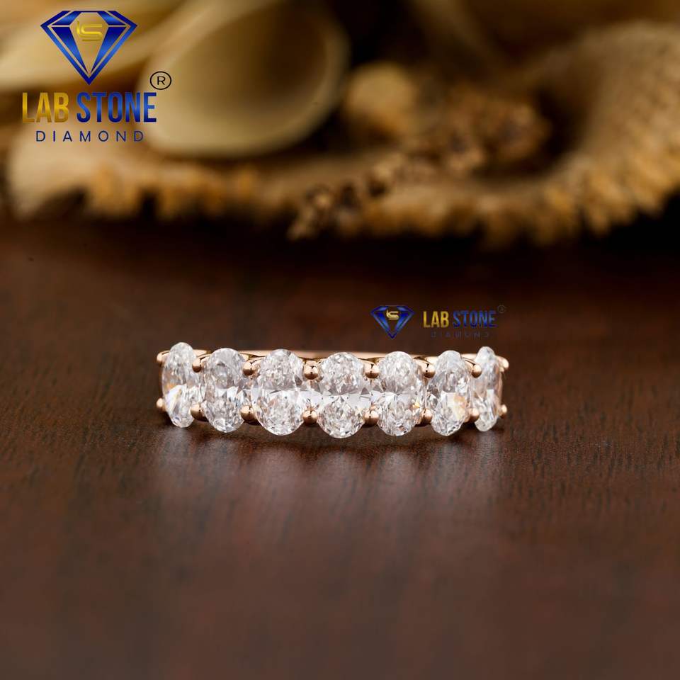 2.10 TDW แหวนเพชรรูปไข่สีโรสโกลด์ครึ่งนิรันดร์หินห้องปฏิบัติการเพชร