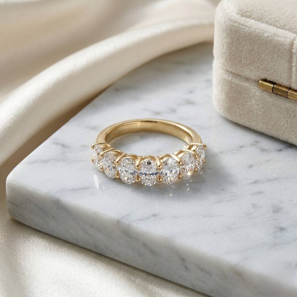 แหวนครึ่งวงกลมประดับเพชรทรงวงรี 2.10 กะรัต