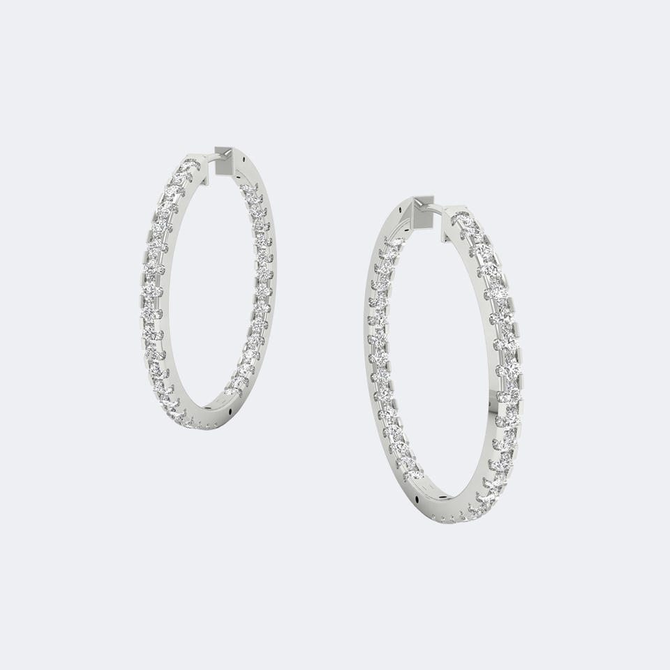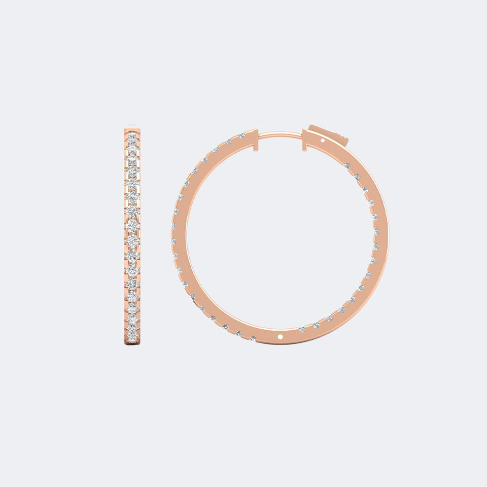 ต่างหูห่วงขนาดใหญ่ประดับเพชรทรงกลม 2.10 กะรัต ตัวเรือนทองคำแท้ ดีไซน์วงกลมแบบหนา ต่างหูแบบ Huggie สำหรับผู้หญิง ของขวัญสุดหรู