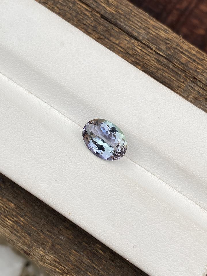 2.12กะรัตหิน tanzanite zoisite พลอยธรรมชาติรูปวงรีที่ไม่ผ่านความร้อนคุณภาพสีชีวภาพคุณภาพเอฟเฟกต์การเปลี่ยนสีด้วยแสง