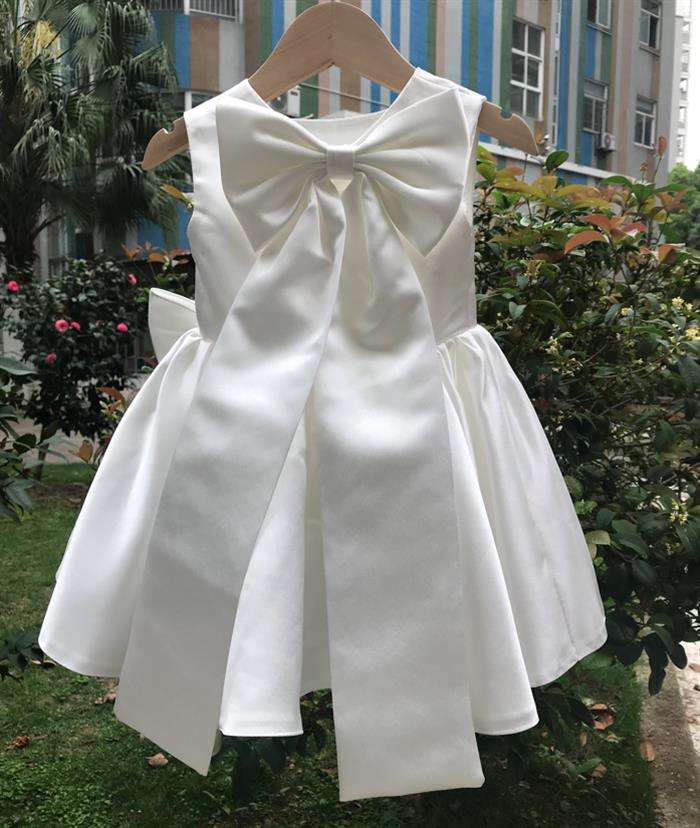 ชุดเดรสเด็กผู้หญิงสำหรับงานแต่งงาน 2-12 ขวบ สีขาว ประดับโบว์ ชุดเจ้าหญิงสำหรับเด็กเล็กและเด็กโต ชุดเดรสลายดอกไม้สำหรับงานวันเกิด งานเลี้ยงตอนเย็น