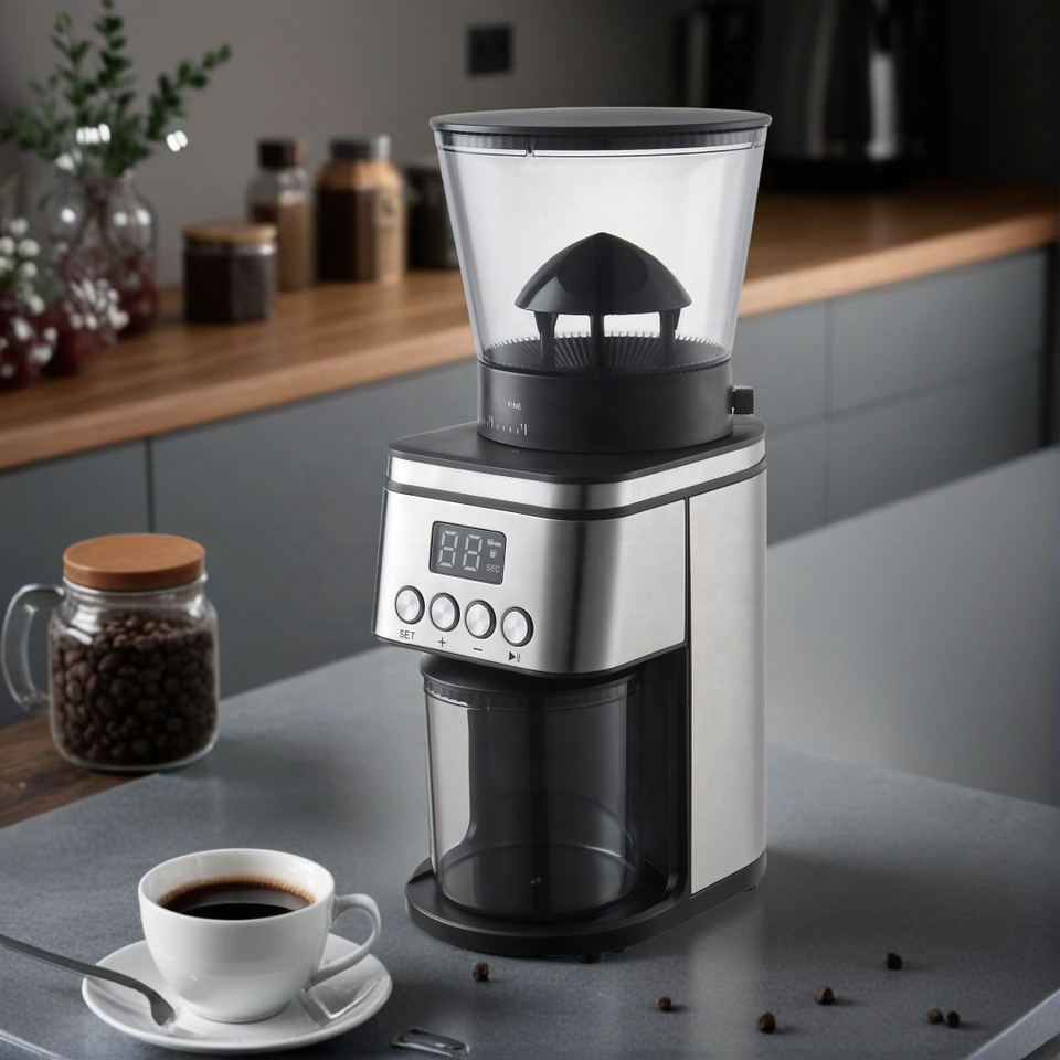 2-12ถ้วยป้องกันไฟฟ้าสถิตย์ปรับการตั้งค่าถั่วไฟฟ้าใบมีดสแตนเลสเครื่องบดกาแฟ