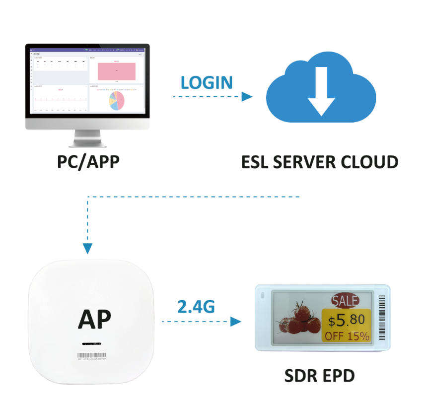 ป้ายราคาอิเล็กทรอนิกส์ E Ink ขนาด 2.13 2.6 2.9 นิ้ว หลายขนาด พร้อมระบบ ESL สำหรับติดตั้งบนชั้นวางสินค้าในคลังสินค้า