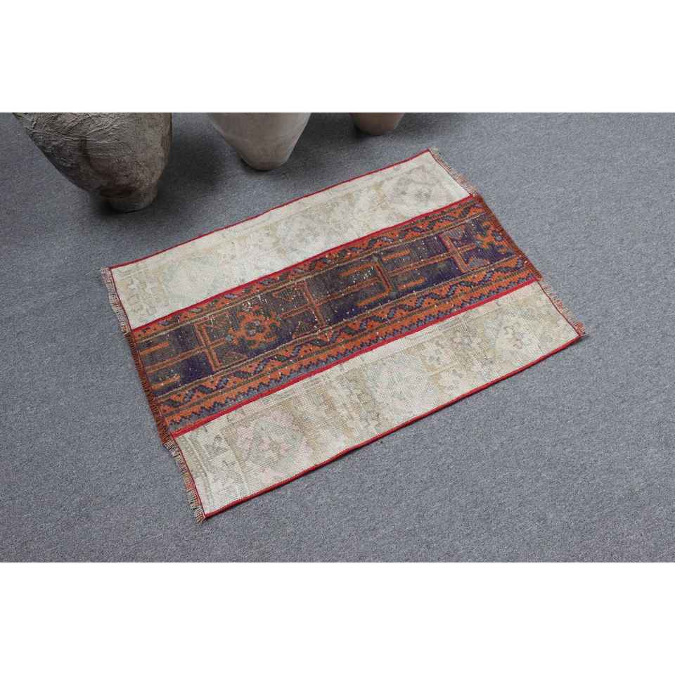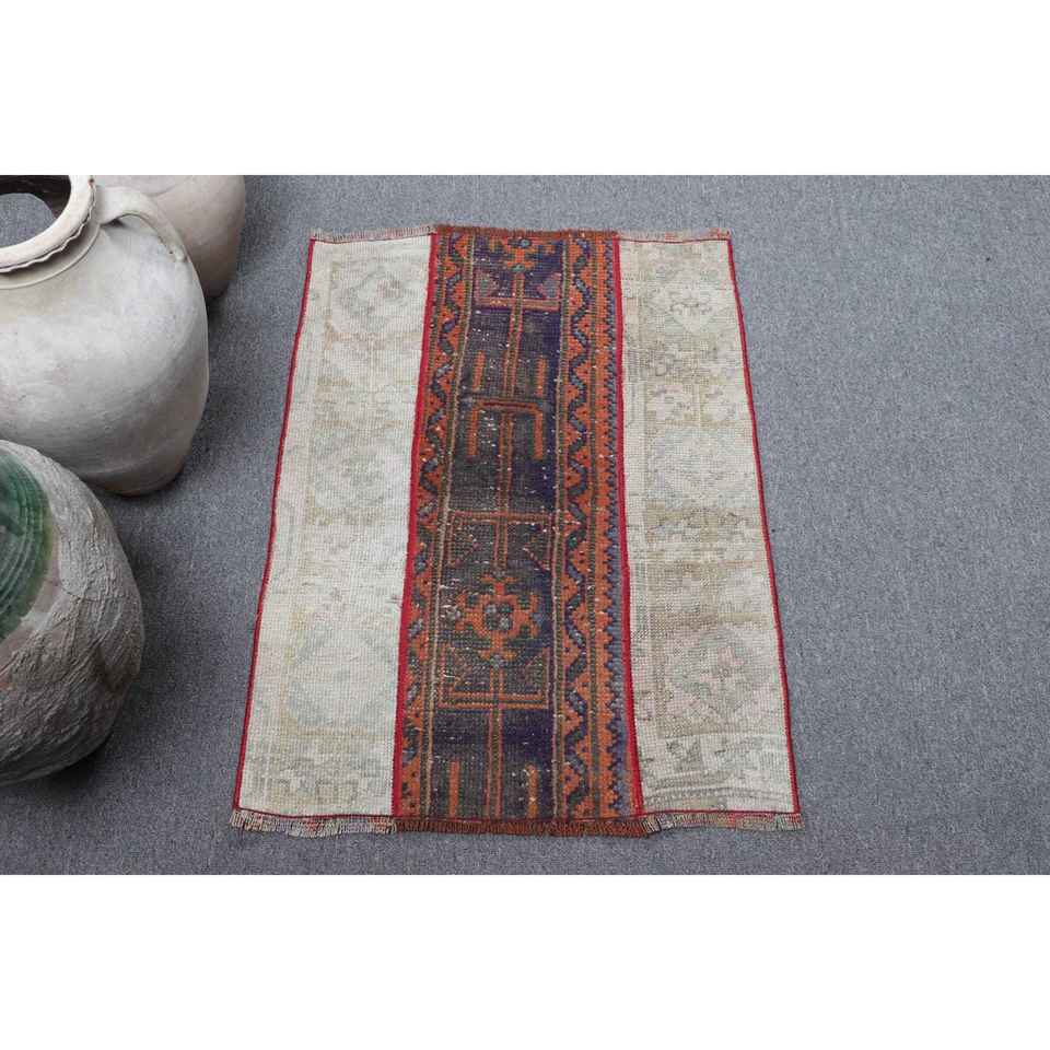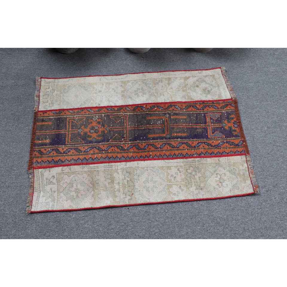 พรมตุรกีขนาด 2.1x2.9 ฟุต พรมวินเทจขนาดเล็ก พรมลายตารางสีแดง