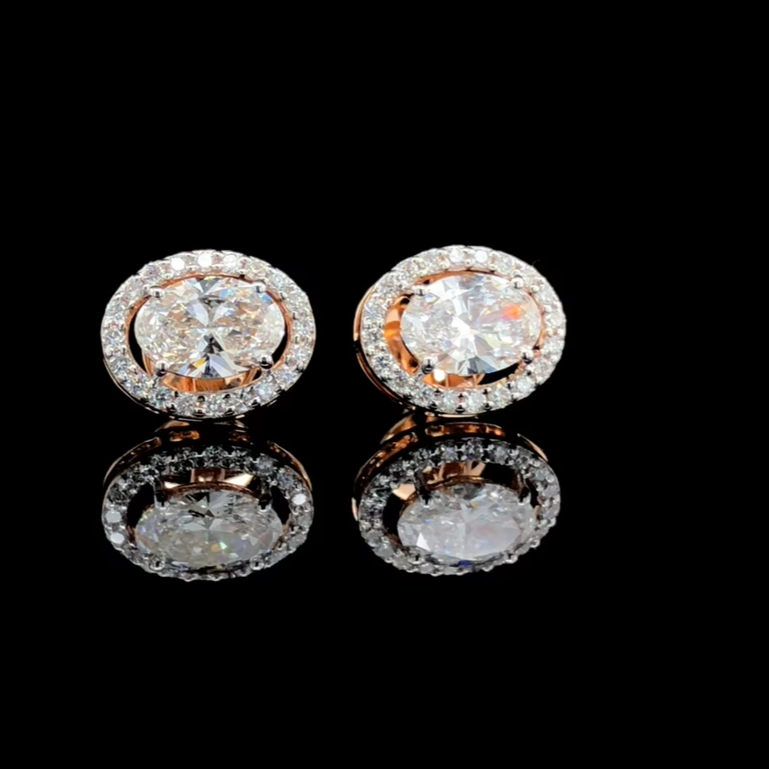 ต่างหูเพชรทรงรี 2.20 กะรัต ผลิตในห้องปฏิบัติการ ทองคำแท้ 14K รับรองโดย IGI