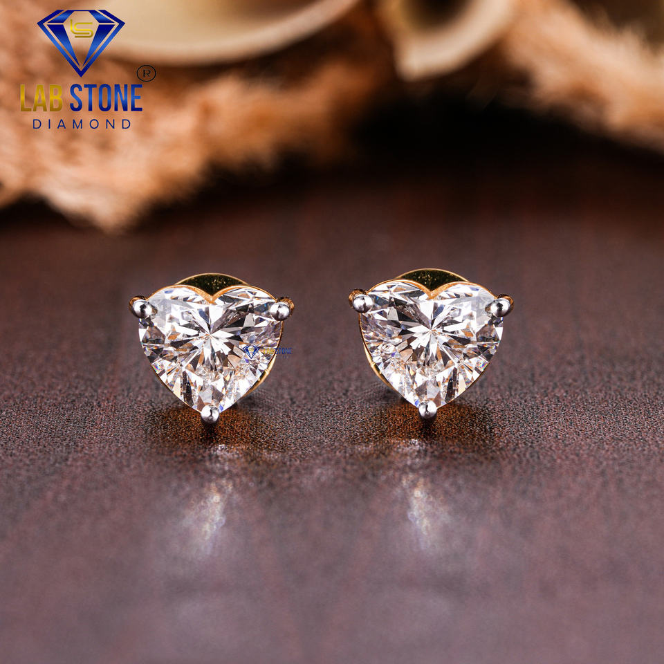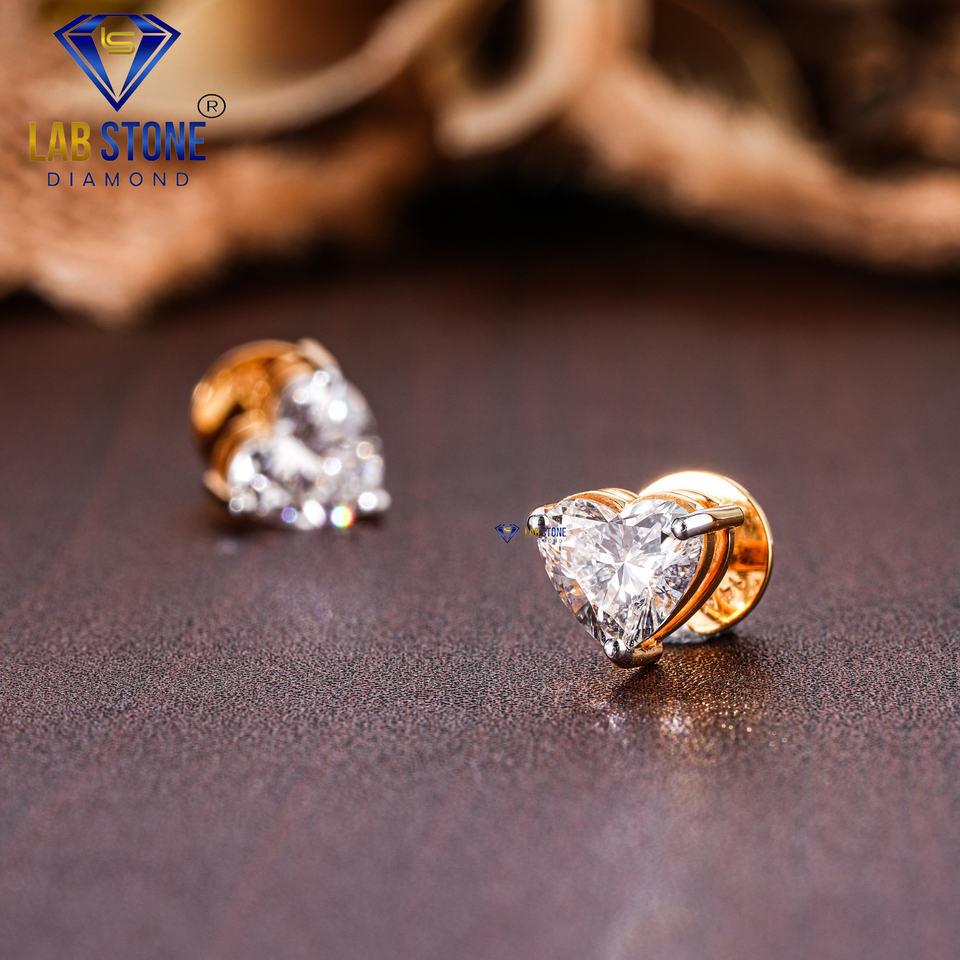 ต่างหูสตั๊ดรูปหัวใจ2.22 TDW labgrown hpht/cvd เพชร VS1ความชัดเจนได้รับการรับรอง IGI ทองคำ18K พร้อมเครื่องประดับใส VS1