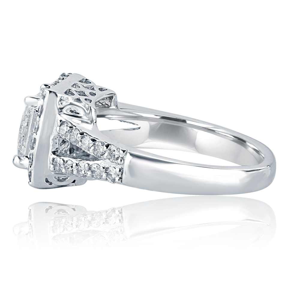 แหวนเพชรเจ้าชายที่มีเสน่ห์2.23กะรัตทองคำขาว18K แหวนครบรอบขอแต่งงานทำด้วยมือก้านแยกกับเพชรด้านข้าง
