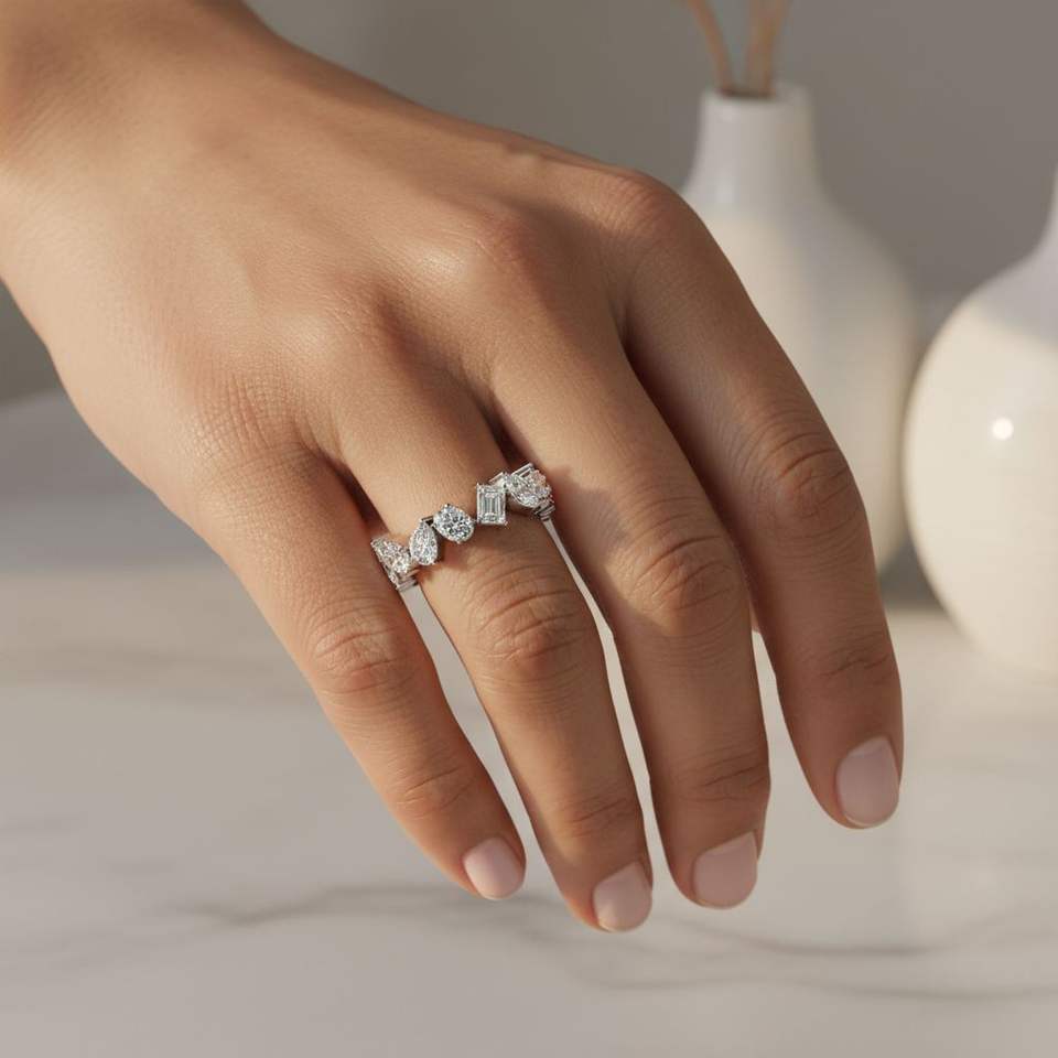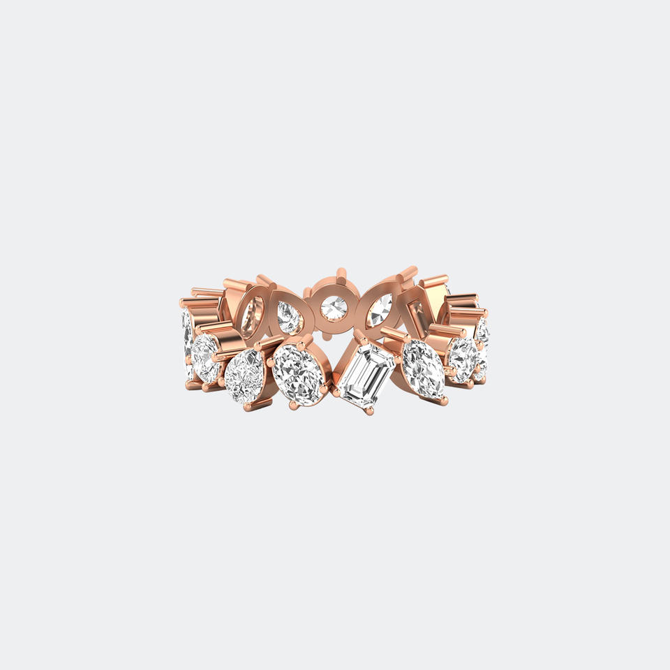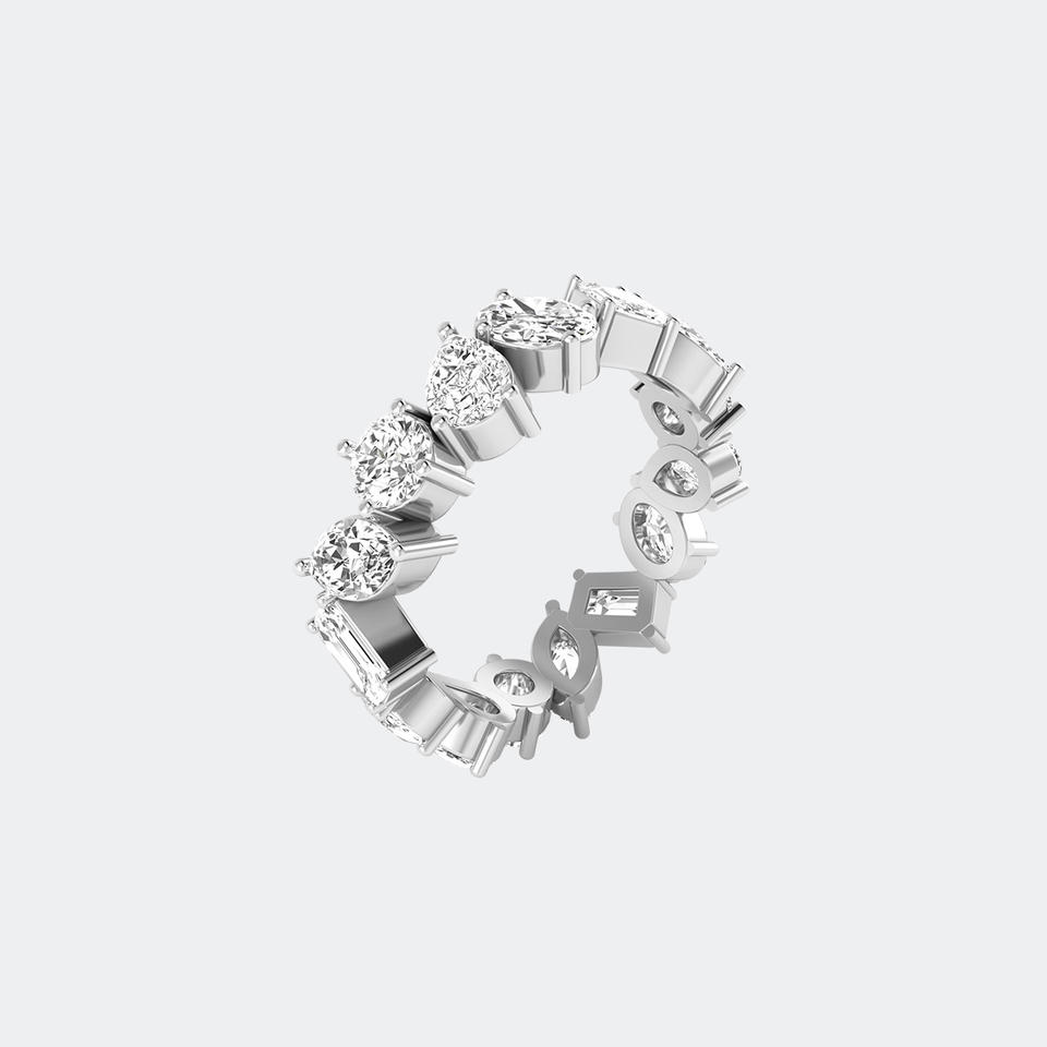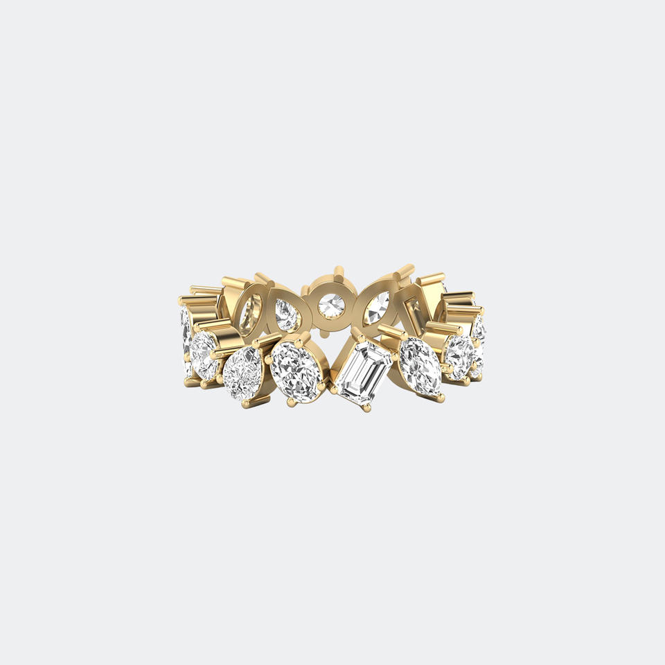 แหวนเพชรเม็ดเล็ก 2.25 กะรัต แบบ Eternity รูปทรงผสม ประดับด้วยเพชรที่เพาะเลี้ยงในห้องปฏิบัติการ ตัวเรือนชุบทอง 9K สี E สไตล์หรูหรา