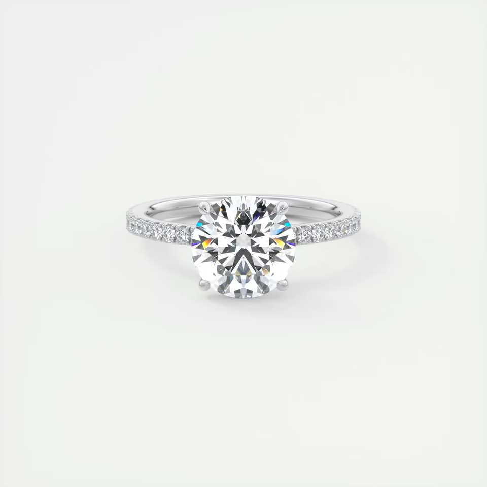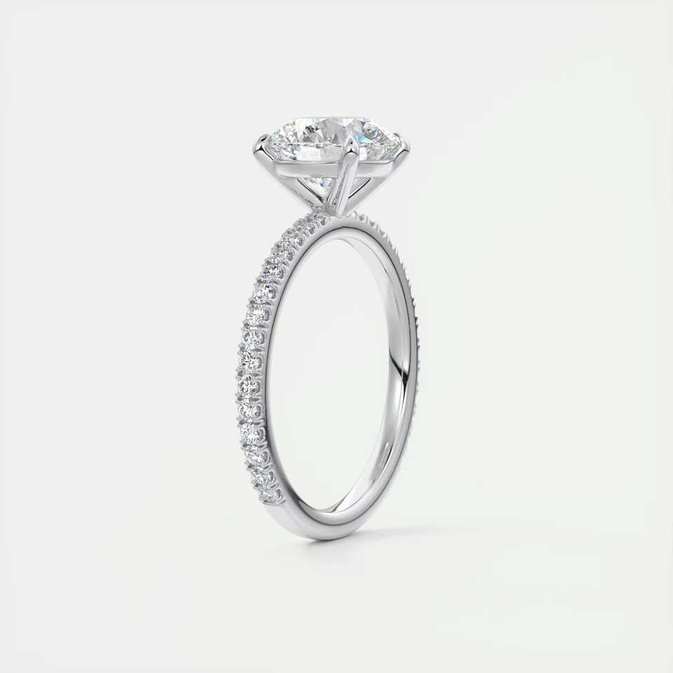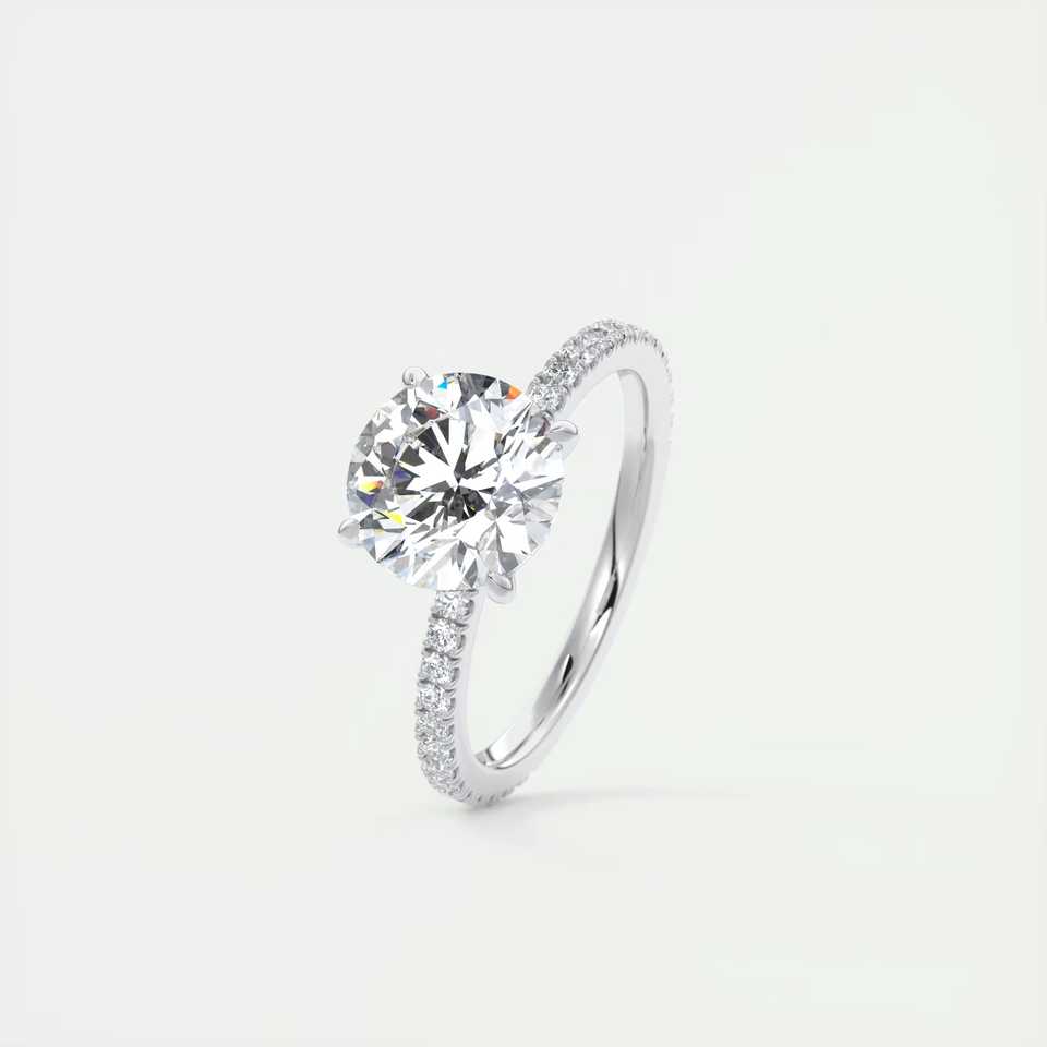 แหวนเพชรทรงกลม 2.25 กะรัต เพชรเลี้ยงในห้องปฏิบัติการ รุ่น Harper Classic Pave Solitaire ตัวเรือนทองคำขาว 14K