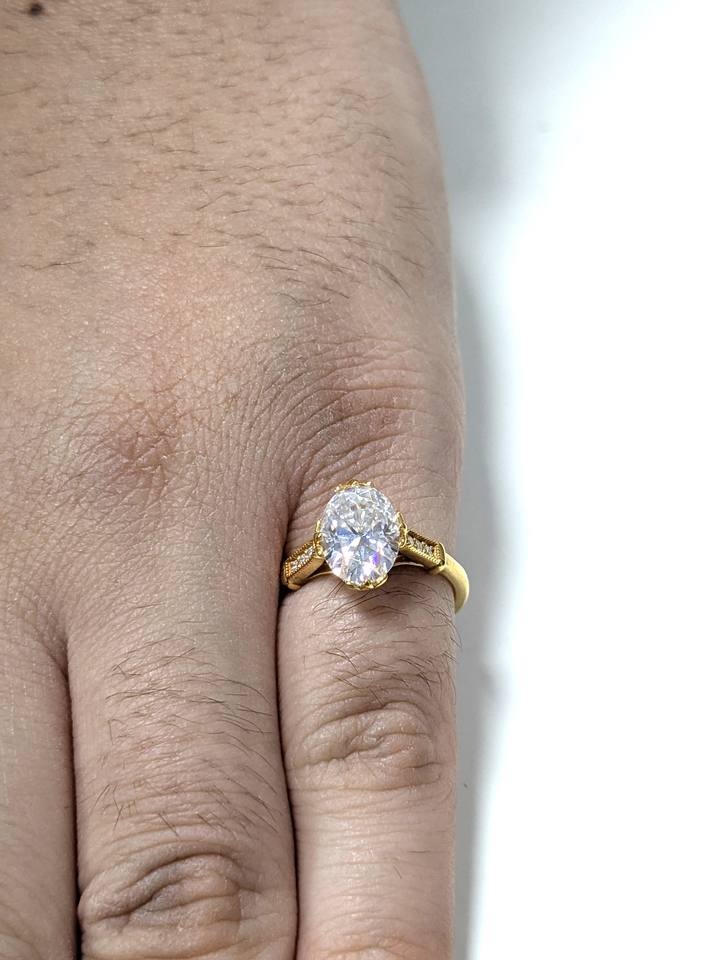 แหวนหมั้นสไตล์วินเทจประดับมอยซาไนต์ทรงรี 2.25 กะรัต, แหวนทองคำแท้ 14K สีเหลือง, แหวนแต่งงานเพชรสำหรับผู้หญิง